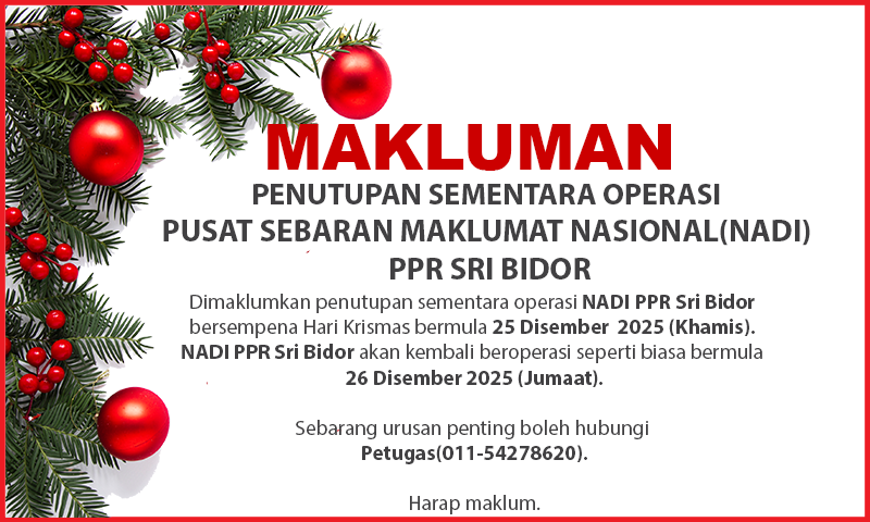 Tarikh : 26 Disember 2025 Masa : 10:00am – 10:30am Tempat : NADI PPR Sri Bidor